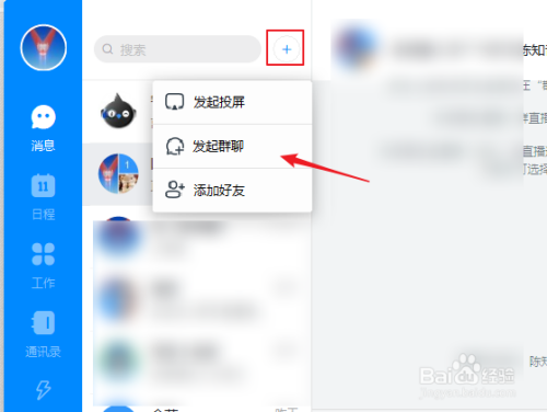 若是还没有群可以点击顶部的【+】建立一个新的群。