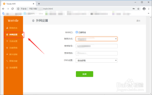 然后点击左侧的“外网设置”
