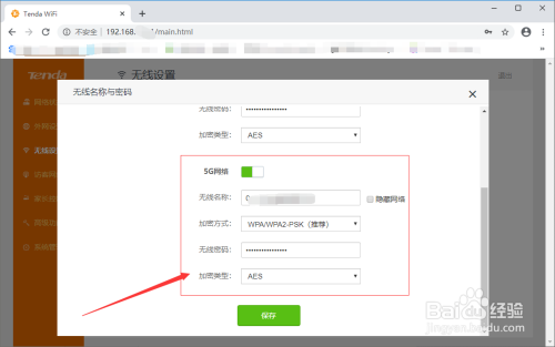 然后输入无线收集名称和密码,点击保留