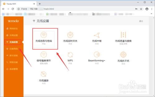 选择左侧无线设置,点击“无线名称与密码”