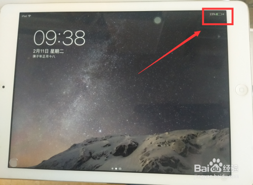 在ipad屏幕右上角显示一个闪电标记,即为当作功充电。