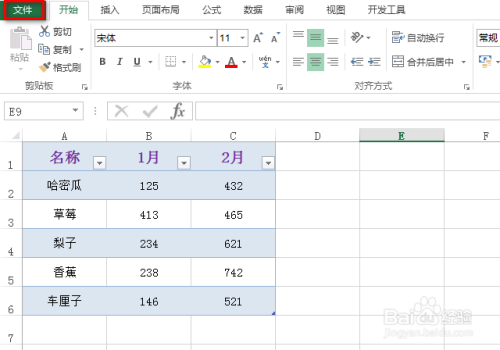 首先,点击excel功能区域的左上角“文件”,具体如下图所示: