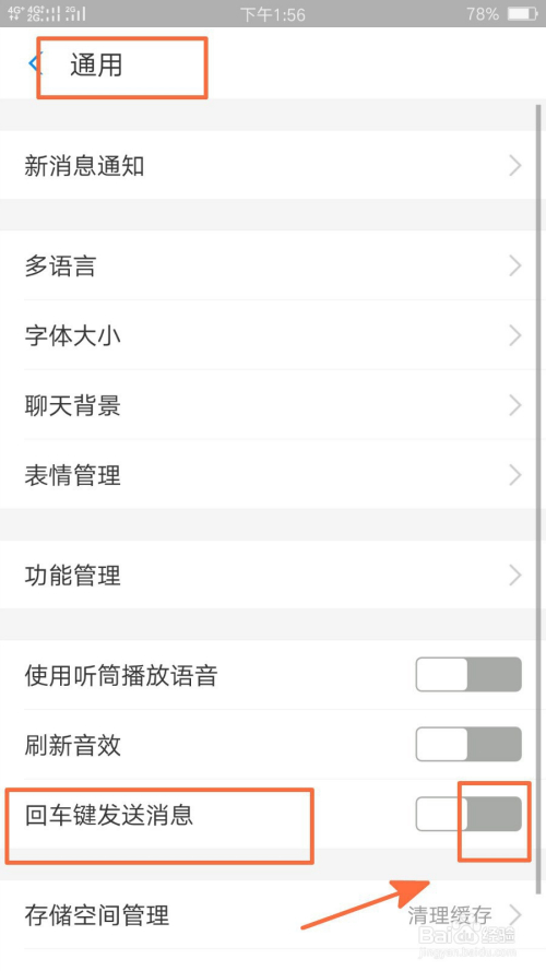 我们这时就可以看到通用设置页面,找到回车键发送动静功能,可以看到该功能为封闭状况;