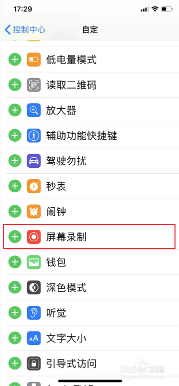 再次打开节制中间就可以查看到【屏幕录制】按钮了!