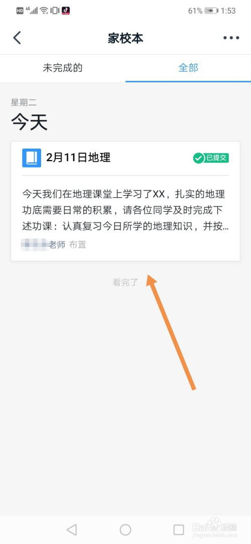 4、提交当作功后,在“全数”界面,我们可以查看我们提交的功课。