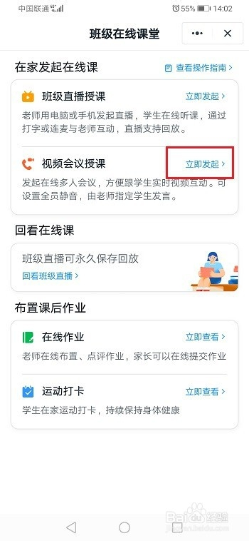 第二步进去在线讲堂之后,选择视频会议讲课,点击当即倡议
