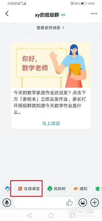 第一步打开钉钉,进去班级群,点击在线讲堂