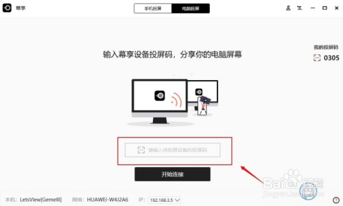 打开电视端软件,找到“投电脑屏幕”的版块,查看上面显示的数字或字母。