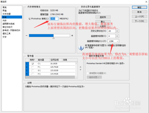 鼠标左键拖接框内的数据,增大数值,数值参考上面抱负规模的区间,把数值设置在区间规模以内。调整缓存级别若是为2,点窜为4,拼接大小可以改为128K以上的数值。