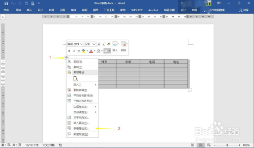 点击Word中需要调整行距的表格左上角的十字图标选中该表格,右键弹出快捷菜单中选择“表格属性”打开表格属性对话框。
