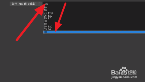 设置完当作缩小方式后,我们再将下方的FPS值设置为【60】也就是最大值