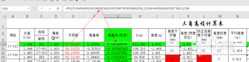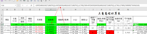 好比将G10单位格垂直角的弧度值化为垂直角的度分秒格局,可用公式为=(INT(ABS(G10)*(180/PI()))+INT(MOD(ABS(G10)*(180/PI()),1)*60)/100+INT(MOD(MOD(ABS(G10)*(180/PI()),1)*60,1)*600)/100000)*SIGN(G10)即可。接下来可编纂计较高差、高差之差、高差更正等计较。