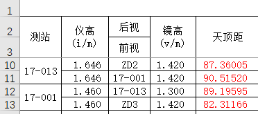 首先将外业所得数据导入到Excel表,天顶距值我们在Excel中直接输为0.000000,代表0度00分00.00秒。