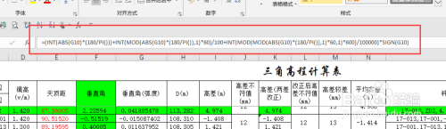 好比将E10单位格的天顶距化为垂直角的弧度值,可用公式为=PI()/2-RADIANS(INT(ABS(E10))+INT(100*MOD(ABS(E10),1))/60+MOD(ABS(E10)*100,1)/36)即可。