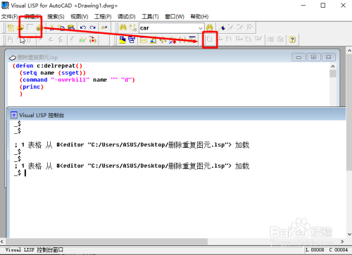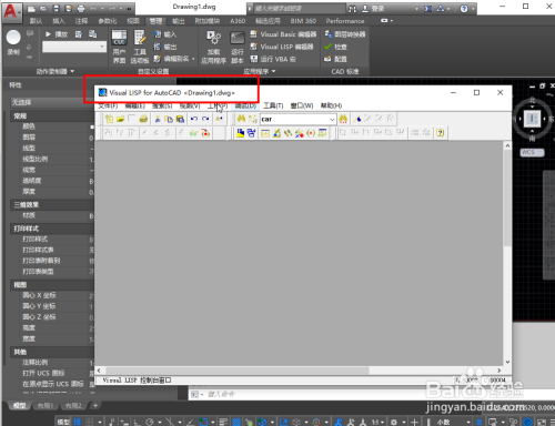 首先打开CAD,号令栏输入vlide,打开lisp编纂器,如图所示。