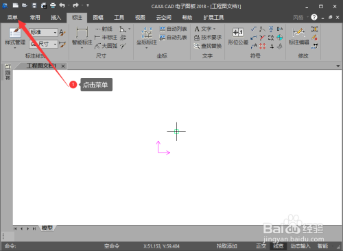 打开CAXA CAD 电子图板2018软件首页,点击菜单。