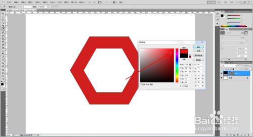 双击六边形图案图层前面的色块,将图案设置为红色即可。