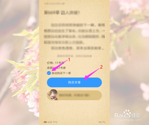 6.今后当弹出采办章节时,先去失落主动采办下一章前面的√,然后再点击当即采办。