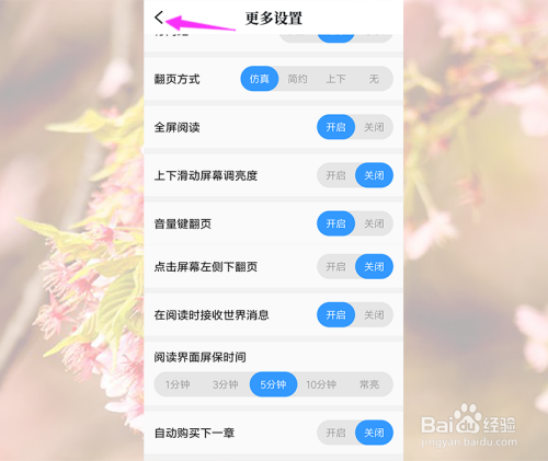 然后在更多设置里面下拉找到主动采办下一章,封闭后面的开关