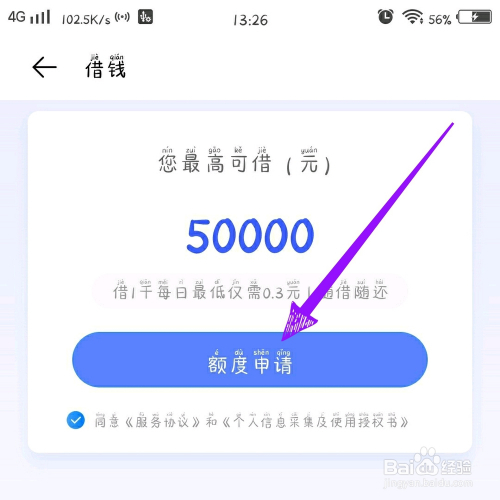 第七步,点击额度申请,完美信息即可查询贷条目额度。