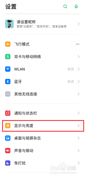点击“显示与亮度”,进入调整手机字体大小的页面。