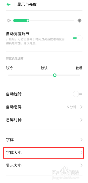这时辰我们看见了“字体大小”,点击“字体大小”,调整手机字体大小。
