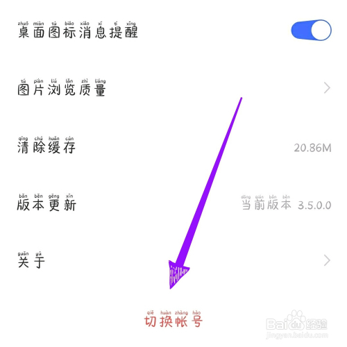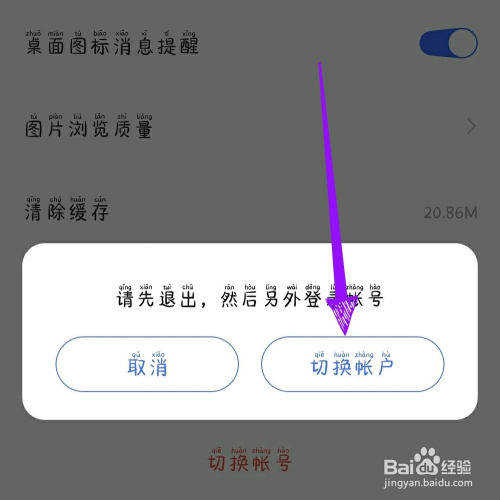 第四步,标的目的下滑屏幕,点击“切换账号”。