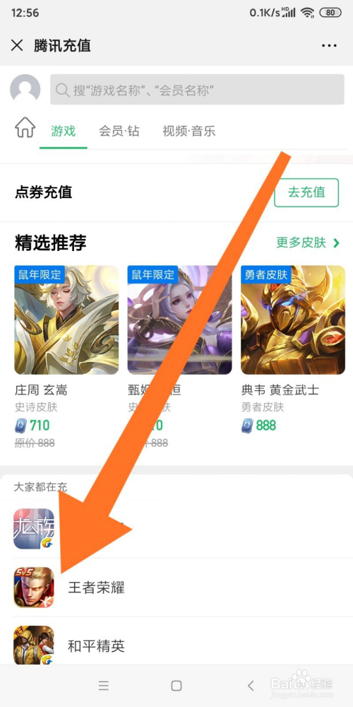 7.如图所示,在这个王者荣耀专区中,我们点击箭头所指的“游戏分区”这里。
