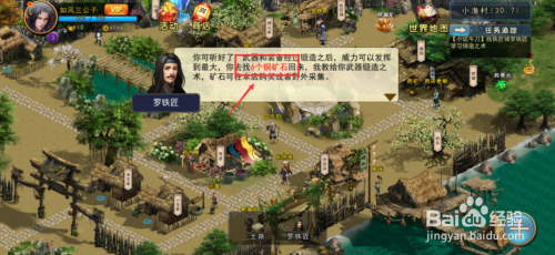 5、把获得的铜矿石×6赐与NPC罗铁匠后点击【锻造之术】。
