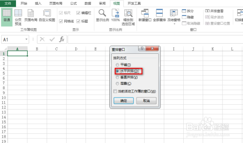 在弹出的对话框中,选择“程度并排”,最后点击“确定”,具体如下图所示: