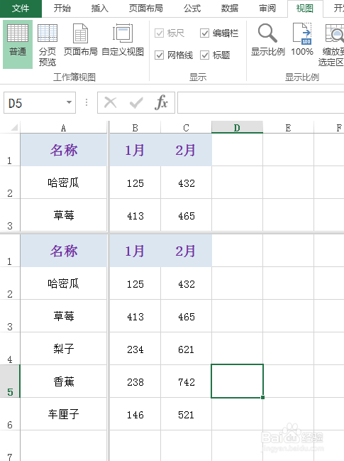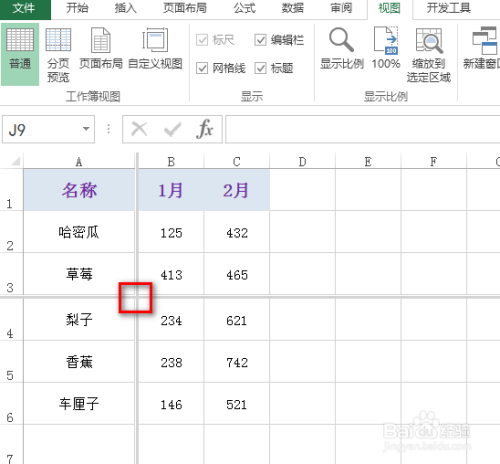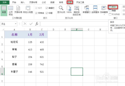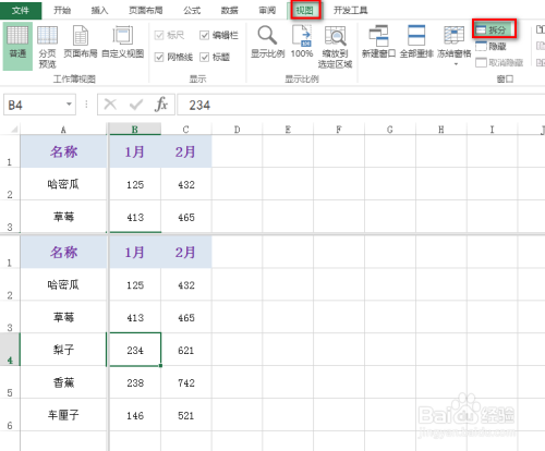 再次在“视图”选项卡下找到并点击“拆分”,具体如下图所示: