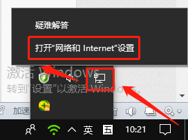 还可以右键点击使命栏中的收集图标,点击“打开收集和共享中间”,有些电脑为“打开‘收集和internet’设置“。