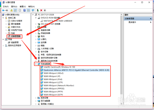 依次点击“设备办理器—收集适配器”,打开电脑网卡设置装备摆设环境,有“Gigabit、GBE、10/100/1000M、RTL8196”字符的则是千兆网卡,有“Fast Ethernet、10/100、FE”等字符是百兆网卡。