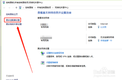 在弹出的新的窗口中点击”更改适配器选项“,即可进入上述第三步。