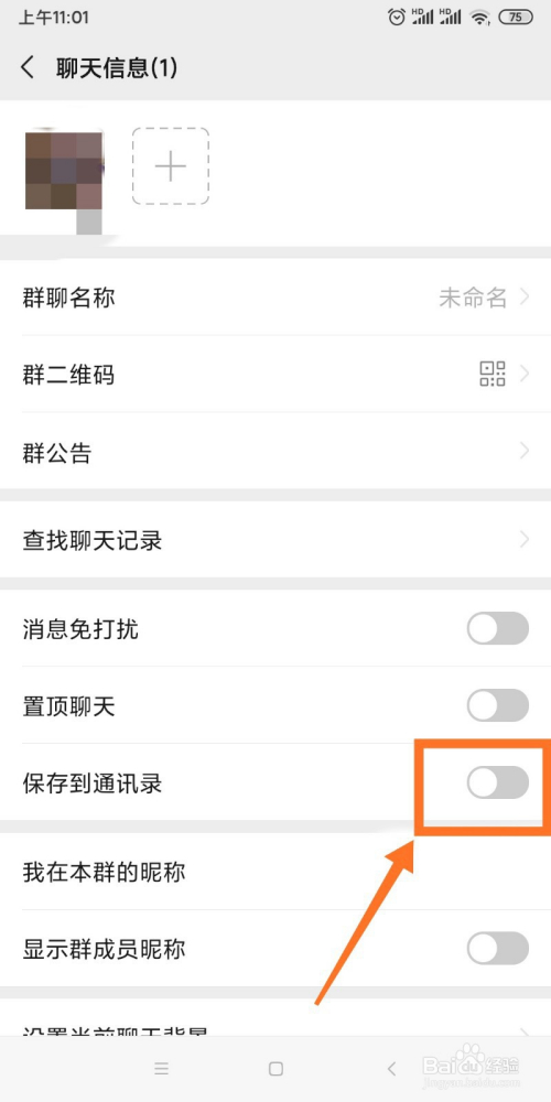 可以看到【保留到通信录】的按钮是封闭的,所以群聊才消逝了。