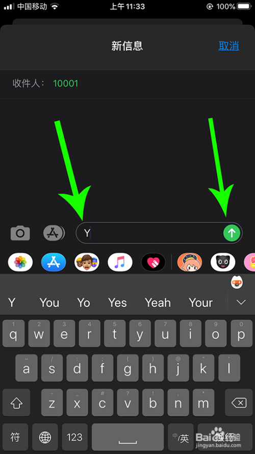 2,收到10001的答复信息后,编纂短信“Y”发送至10001