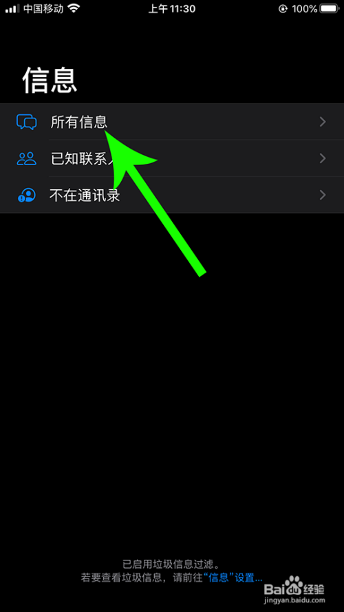 打开手机桌面点击“短信”图标,打开短信界面点击“所有信息”。