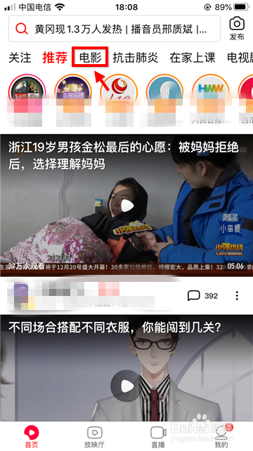 进入西瓜视频本家儿界面后点击“片子”,然后打开肆意片子不雅看。