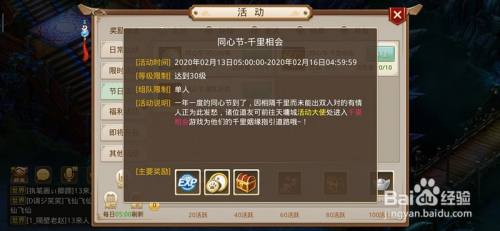 我们首先看下齐心节千里相会的活动,可以看到时候与奖励。