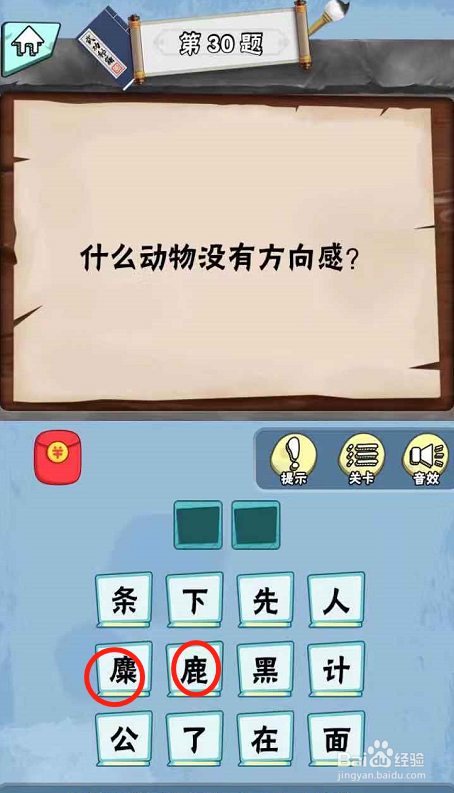 在第三十关内,提问什么动物最没有偏向感