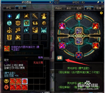 注重:符文位置要挨次对应类型,放对了位置,符文和护石才会呈现连线,暗示对应。