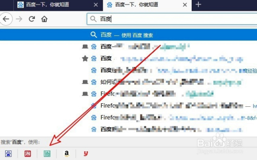 1、在利用火狐浏览器的时辰,可以看到弹出很多多少用不到的搜刮引擎快捷链接。