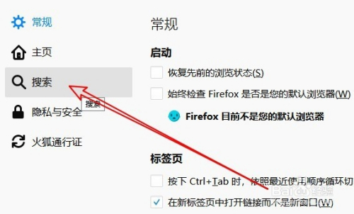 然后在打开的选项窗口中点击搜刮的菜单项。