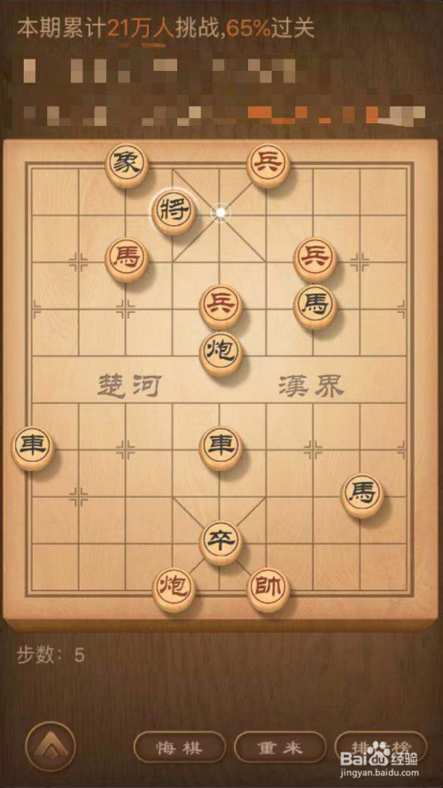 默认我方为红方,电脑方为黑方,红方先。我方:(前)兵三平四,将军。黑方:将5退1。