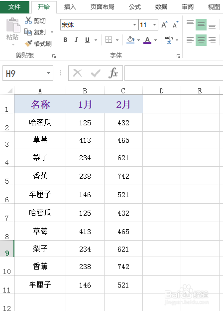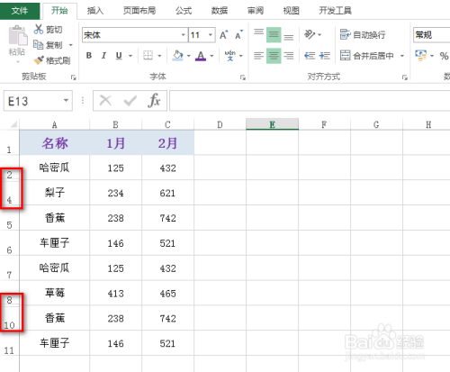 如下图为原始数据区域,此中,数据区域中的第3行以及第9行被埋没了。