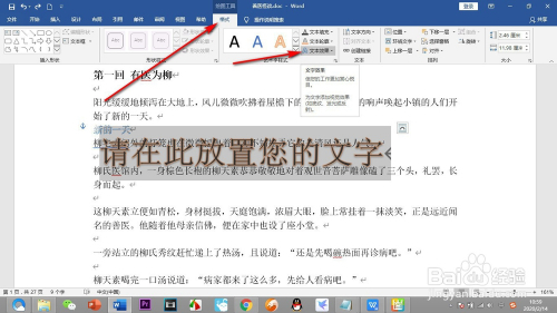 - 点击上方的格局选项卡,之后点击格局选项的——文字结果。