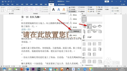 点击下拉菜单之后,选择一种三维的扭转,之后文字就会发生扭转。