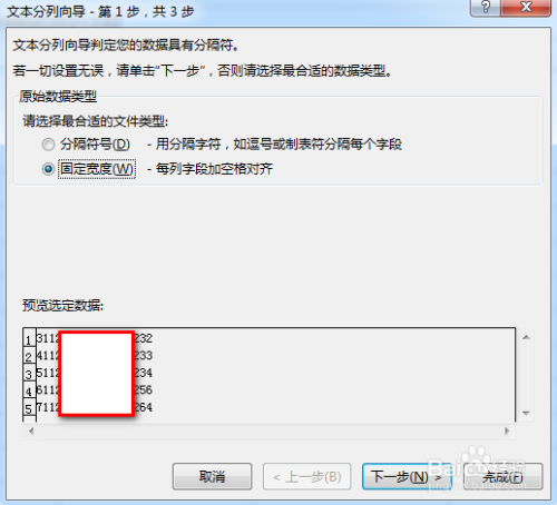 在弹出的设置框中,选中“固定宽度”,接着点击“下一步”,具体如下图所示: