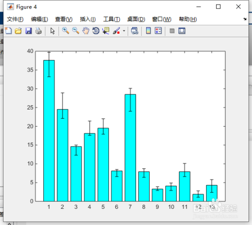 利用条形图和错误栏函数建立一个带有错误栏的条形图。