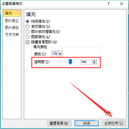 在填充选项卡中设置好“透明度”,再点击“确认1”